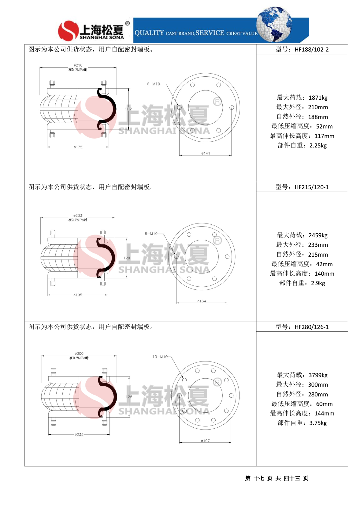 如果對空氣彈簧的耐壓強度有特殊要求,請聯系我們的技術部門,也可定做 4 層加強簾布層的特殊型號。